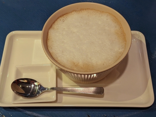 ホッとのカフェオレ「カフェオレ・ボール」です。泡立ち豊かな珈琲です。ボウルのような大き目のカップで出てきます。「カフェオレ・ボール」はボウル由来の名前なのかな? 670円ですが、食事とセットだと200円引きになります。