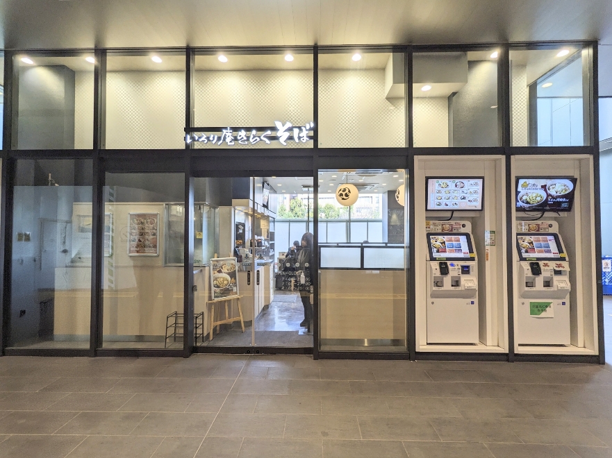 JR東日本が運営する立ち食いソバ店「いろり庵きらく」です。御茶ノ水駅構内にある、いろり庵はガラス張りでとてもモダンな感じです。