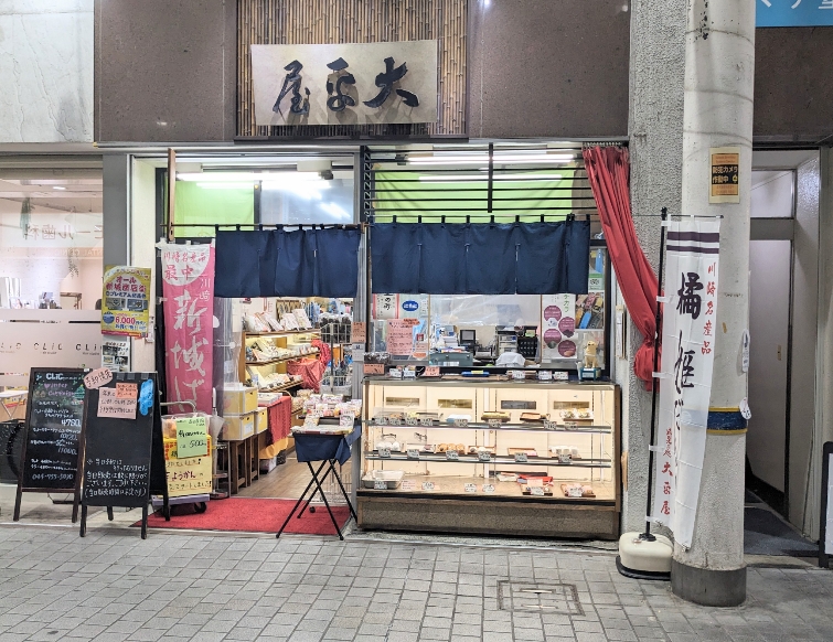 場所は、駅から「あいもーる(屋根付き)商店街」を入ってすぐの所にあります。老舗です。