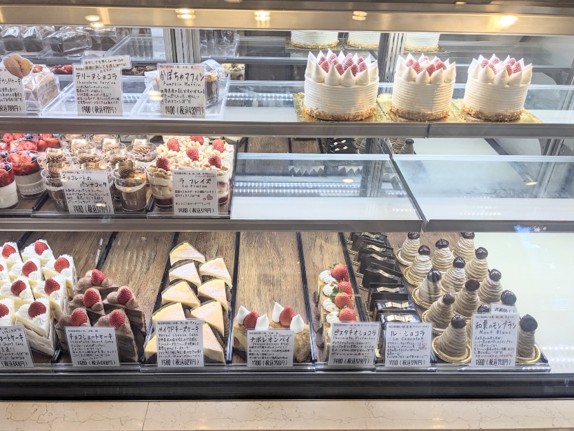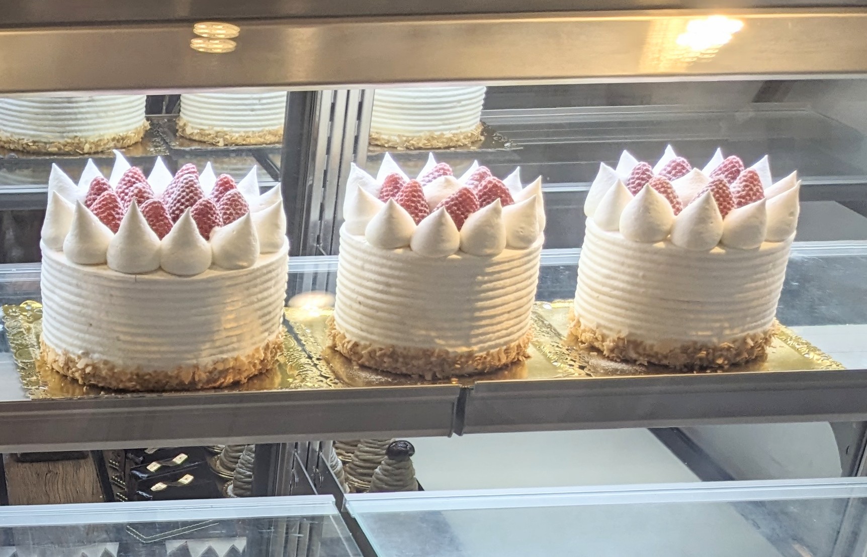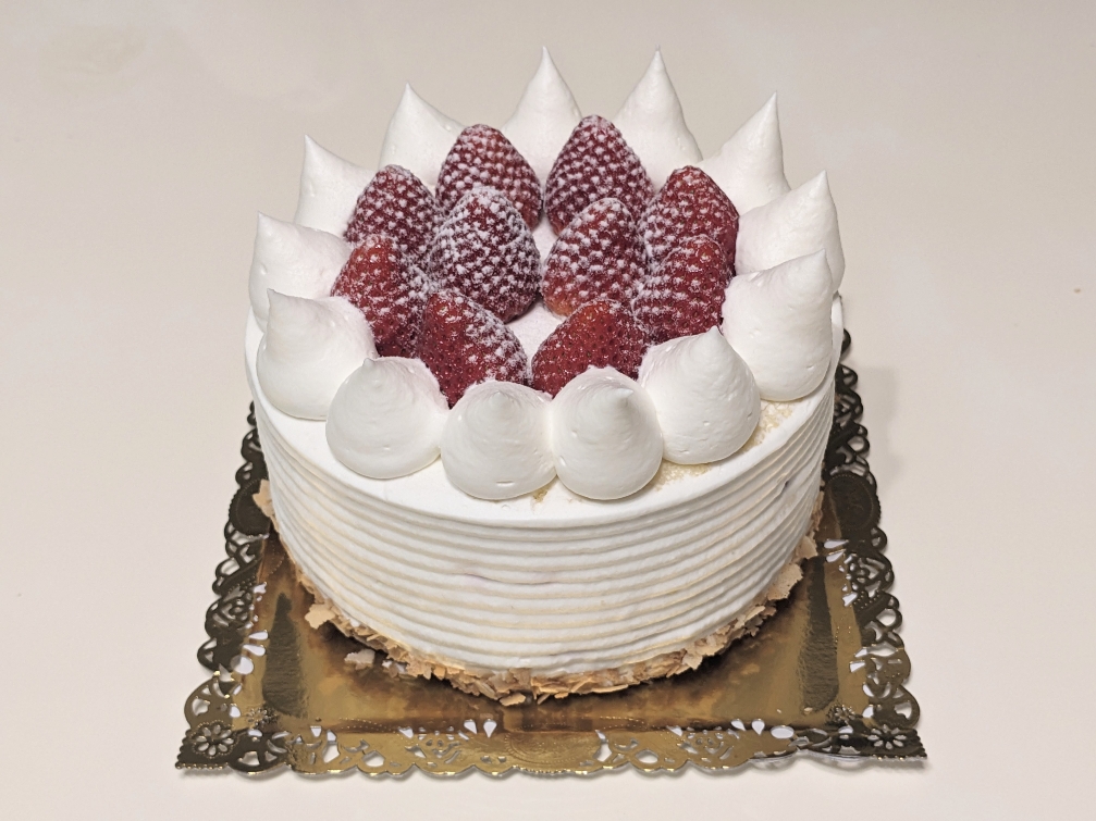 誕生日のお祝いやクリスマスなどに、綺麗なホールケーキもあります。 こちらは5号サイズ、¥3,780です。