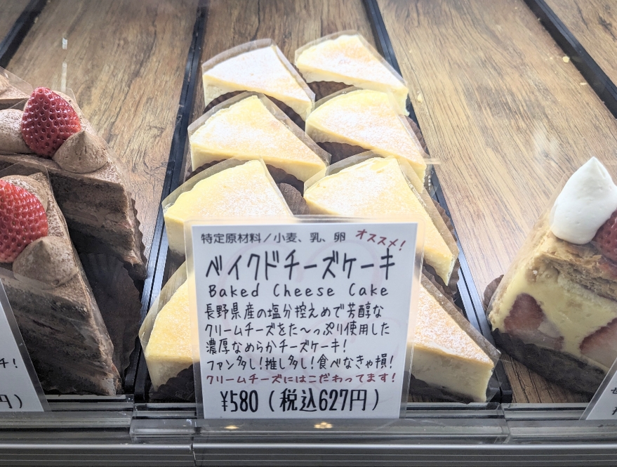 「ベイクドチーズケーキ」です。濃厚なチーズのなめらかなチーズケーキです。