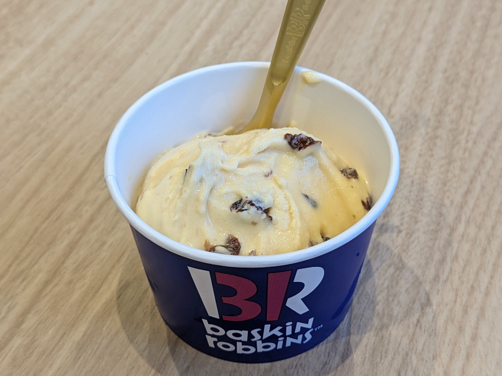定番の「ラムレーズン」です。一番小さなキッズカップ¥340です。