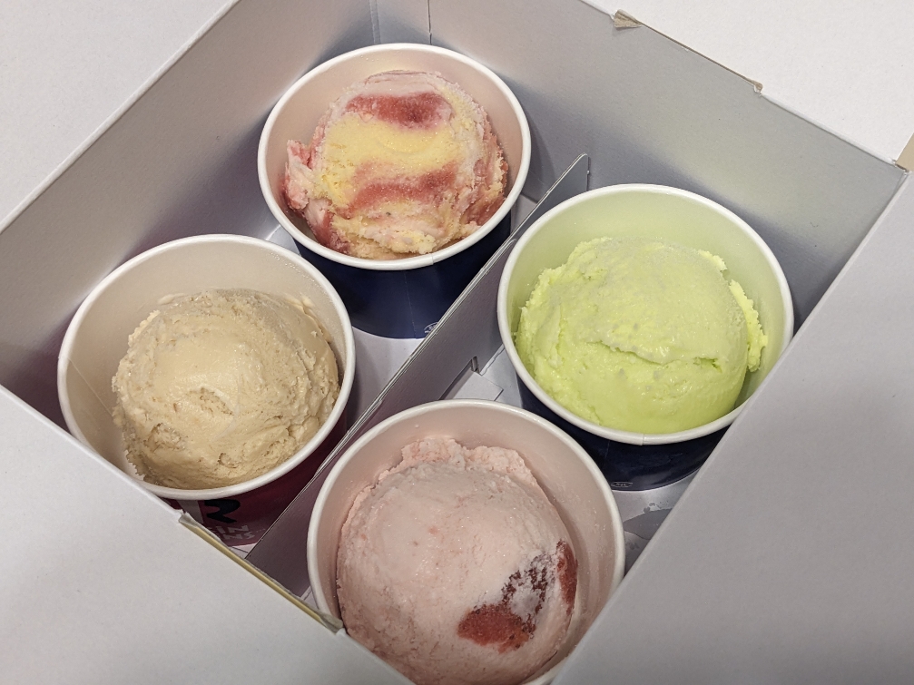 4つのアイスクリームは色とりどりに選べます。彩りも華やかです。