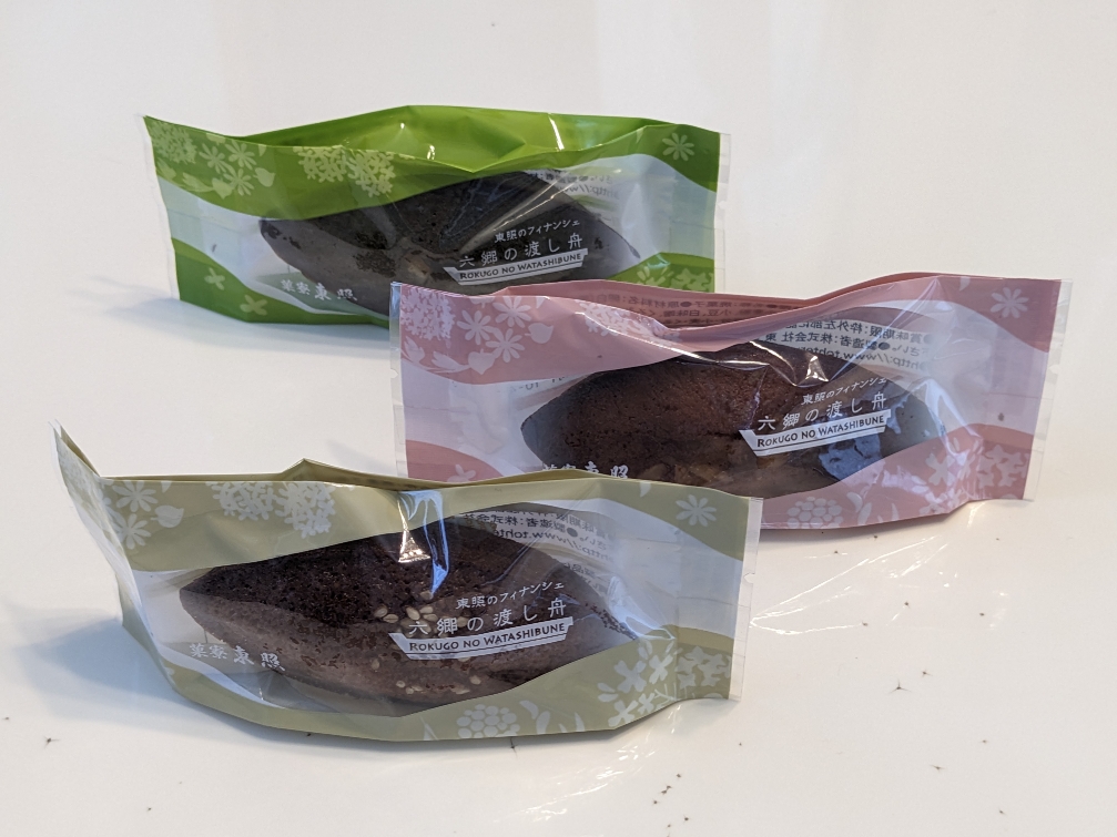 フィナンセの「六郷の渡し舟」です。胡麻・よもぎレモン・白味噌の3種があります。