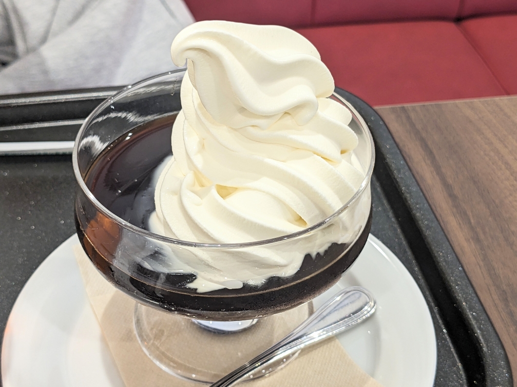 しっかりとコーヒー感のあるゼリーに、ソフトクリームが乗っていて、絶妙の組み合わせです。
