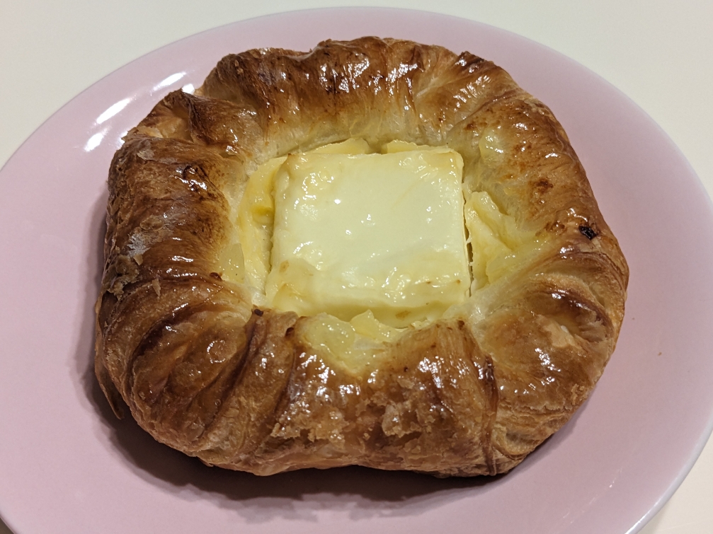 「クリームチーズデニッシュ」です。 クリームチーズとカスタードクリームのコンビです。ほんのりと甘くて美味しいです。