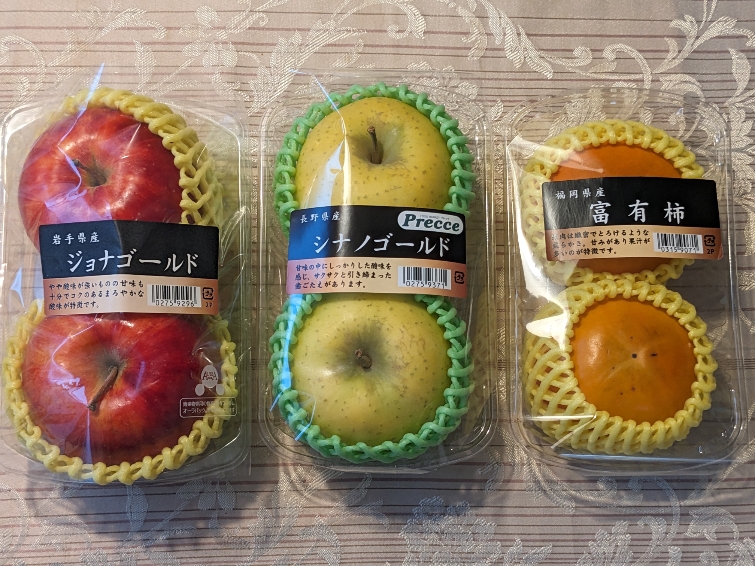 ジョナゴールド、シナノゴールド、富有柿を買ってきました。さすがプレッセ、果物も高価ですが、美味しいです。