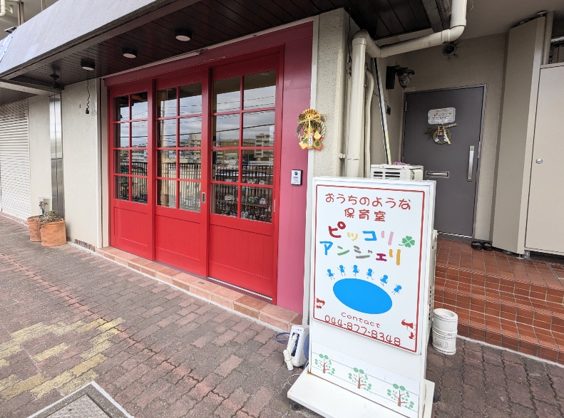 梶が谷駅を出て右手、最初の信号の先にあるマンションの階段を上ったところです。