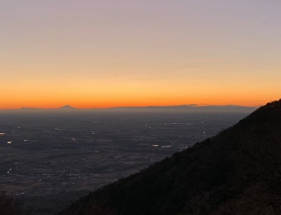 西に陽が沈みかけると、富士山がシルエットになって浮かびます。