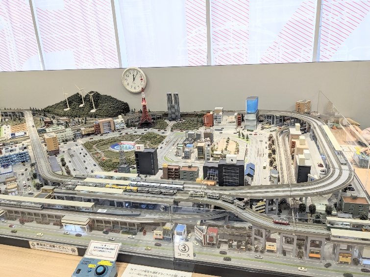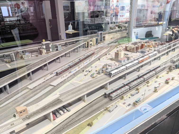 Nゲージのジオラマです。自分の模型を走らせることもできます。