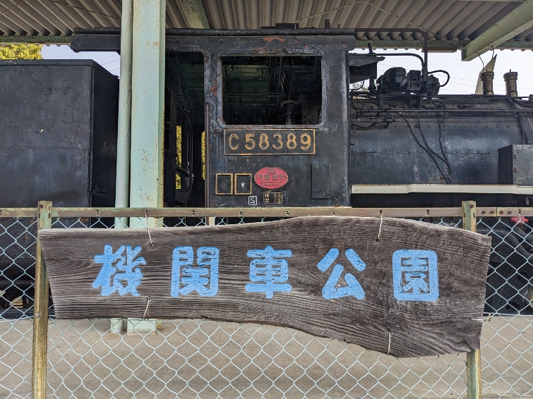 かつて国鉄二俣線で活躍したSL「C58 389号機」が展示されています。
