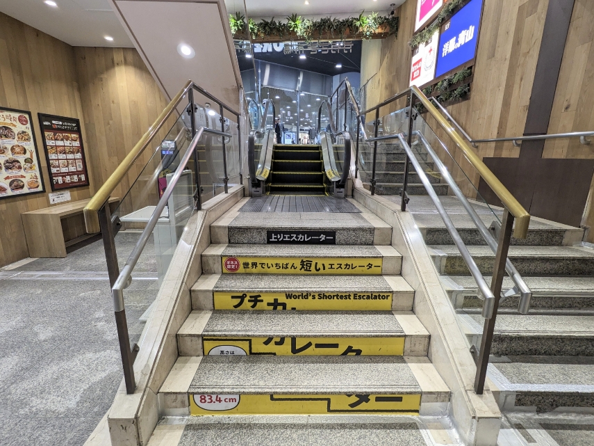 川崎駅のアゼリア地下街、岡田屋モアーズの入口に世界一短いエスカレーターがあります。ギネスブックにも載って、話題になりました。エスカレーター隣の階段を利用する人が、意外と多い気もしますが…
