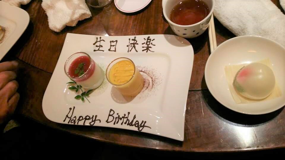 デザート。 この日は誕生日祝いだったので、特別にサービスで桃の饅頭を付けてくれました。