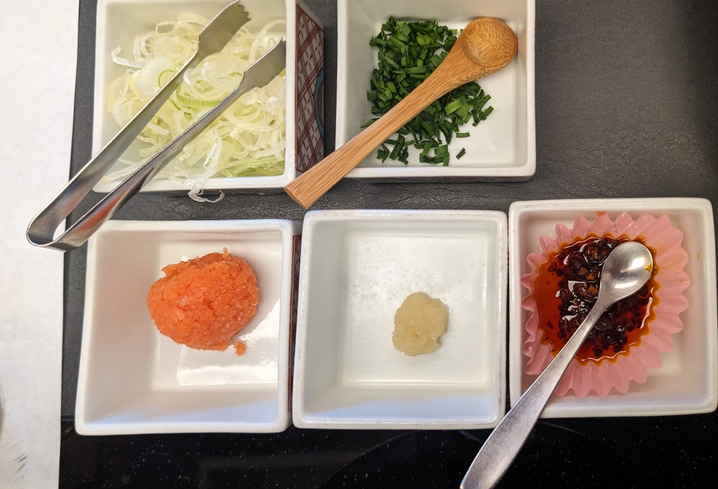 しゃぶしゃぶ。ネギヤ紅葉おろしなど、薬味もたくさん用意されています。
