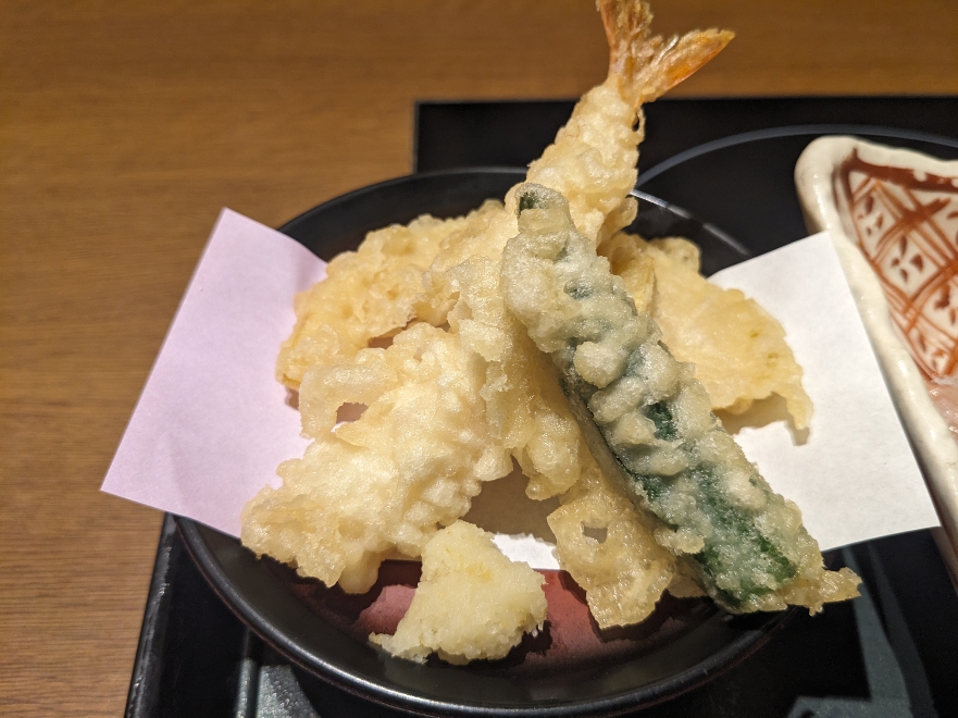 コース料理です。内容は 【先付、お造り(3種)、たらば蟹の天婦羅、しゃぶしゃぶ(肉・野菜盛)、きしめん・餅、御飯、香の物、デザート】 です。