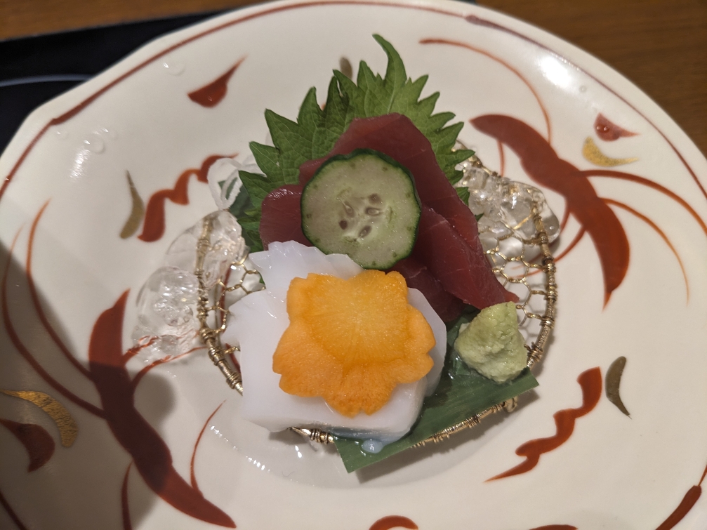 マグロとイカのお造りです。