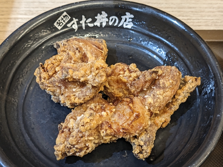 サイドメニューの「すたみな唐揚げ2個」¥300です。これも味がしっかりとしています。柔らかいですし、見た目より断然美味しいです。