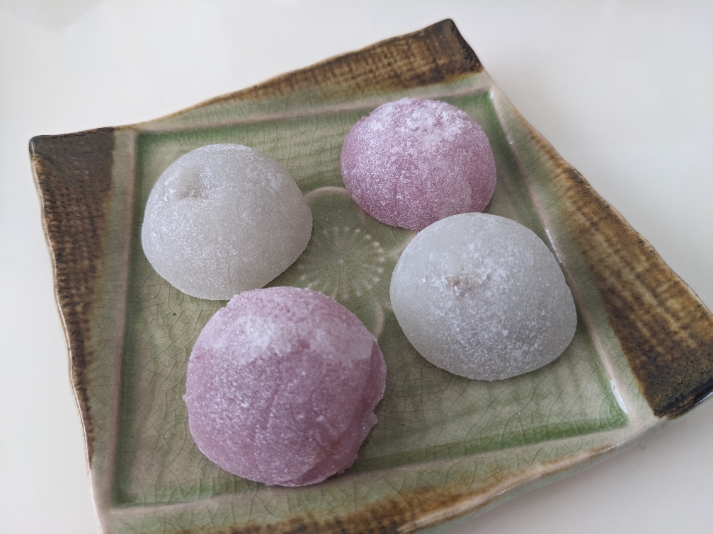 紅白のお団子が綺麗です。 白 :濃い黒蜜ときな粉 ピンク:蜂蜜が入った黒蜜と黒大豆のきな粉