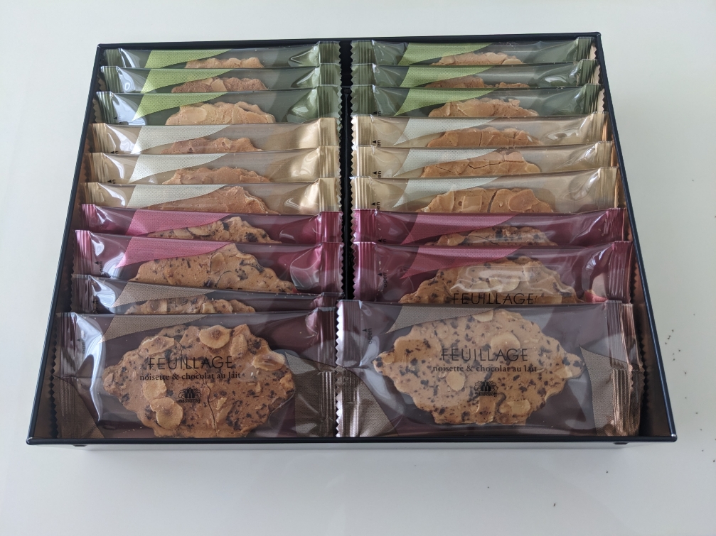 モロゾフと言えば、チョコレートのイメージですが、クッキーもあります。「ファヤージュ」とはフランス語で「木の葉」の意味です。