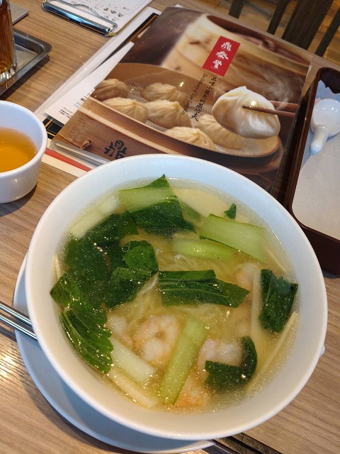 上品な塩味のスープに、プリプリのエビの組み合わせが美味しい。