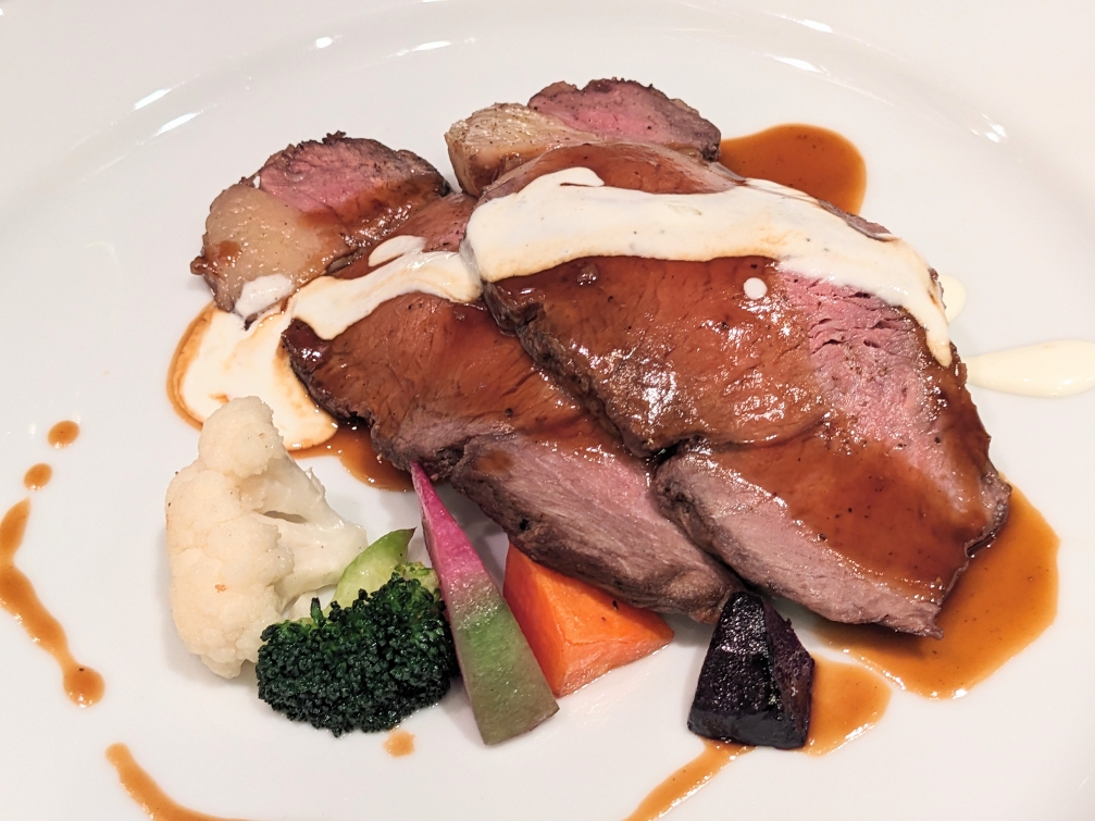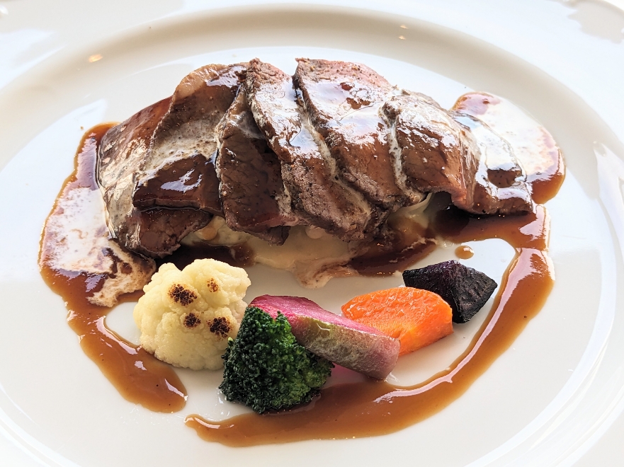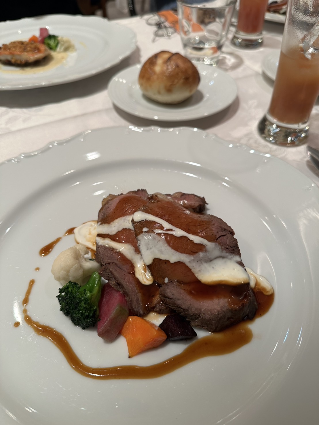 メインディッシュの肉料理はローストビーフです。 Bコースのメインディッシュは肉料理か魚料理の選択です。