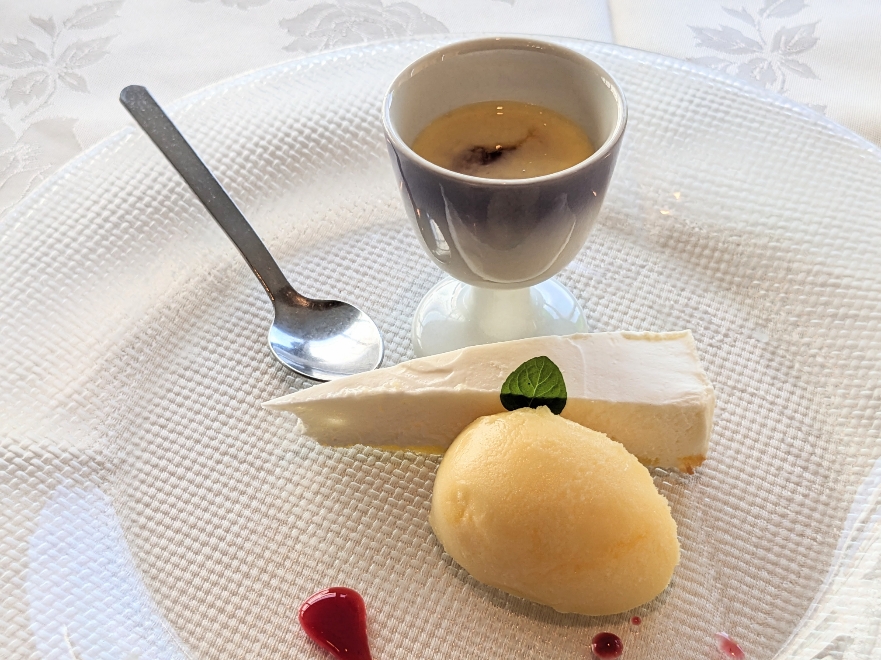 デザートです。 手前から、柚子のシャーベット、チーズケーキ、パンナコッタです。
