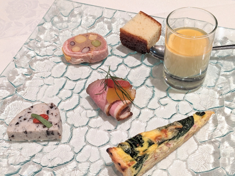 前菜です。 スペイン風オムレツなど、4種類のオードブルです。 どれも大変凝っています。