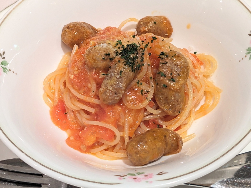 Bコースにはハーフパスタが付きます。 チョリソーとフレッシュトマトのパスタです。ピリ辛具合も丁度良いです。