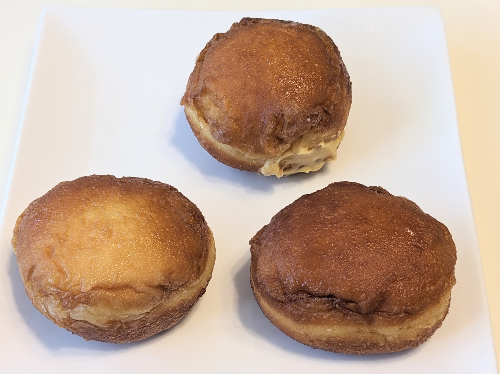 プレーンな「シュガー」、シナモンパウダーがかかっていて独特の味の「シナモン」、中にカスタードクリームが入っている「カスタード」です。