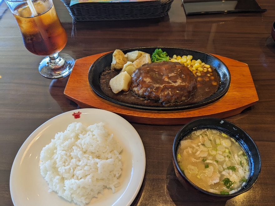 ハンバーグのソースはデミグラスソースorステーキソースが選べます。