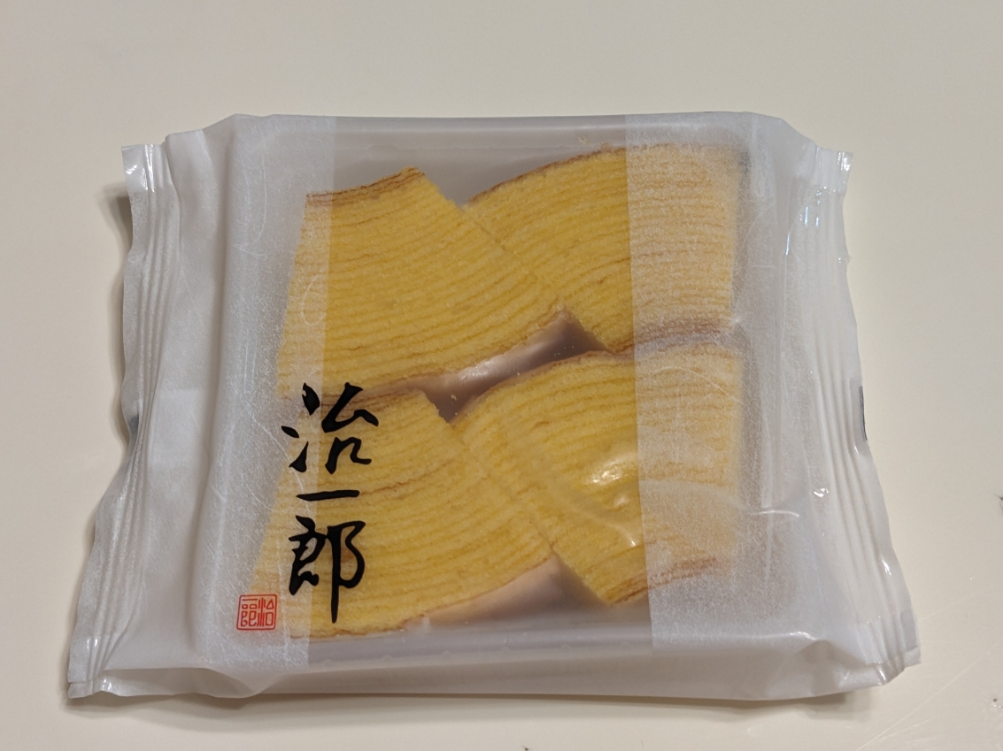 治一郎のバターカステラです。お洒落な袋に入っています。450円。