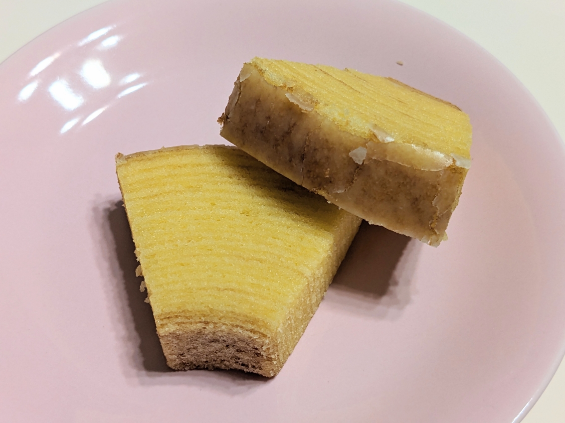 カットしてあるバウムクーヘン。一口サイズでもあの美味しさは一緒です。