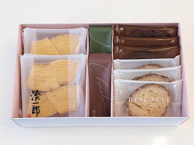 バウムクーヘン、ガトーショコラ、ビスコットの組み合わせです。