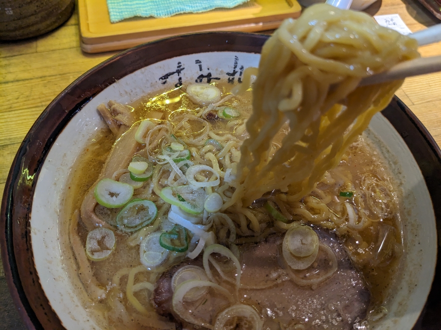 麺は札幌味噌ラーメンらしく太めの麺。しっかりとスープと絡みあっています。
