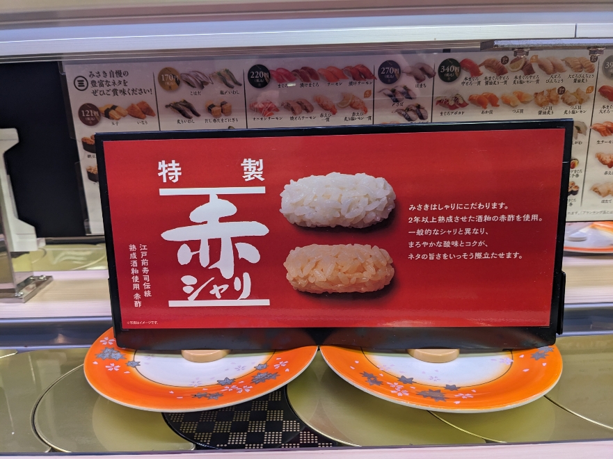 回転ずしでは珍しい赤酢を使ったシャリです。 これだけでも十分魅力的。