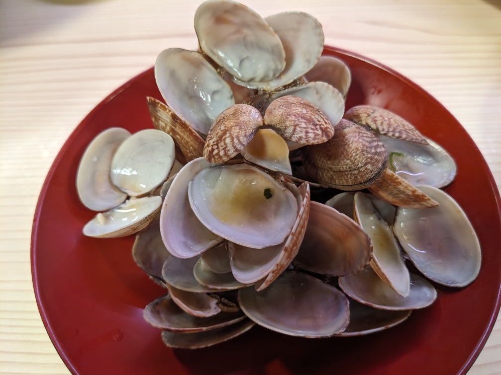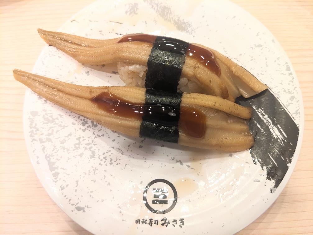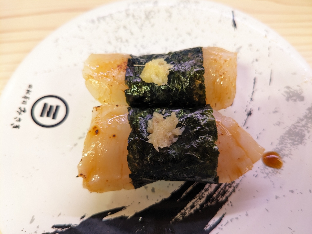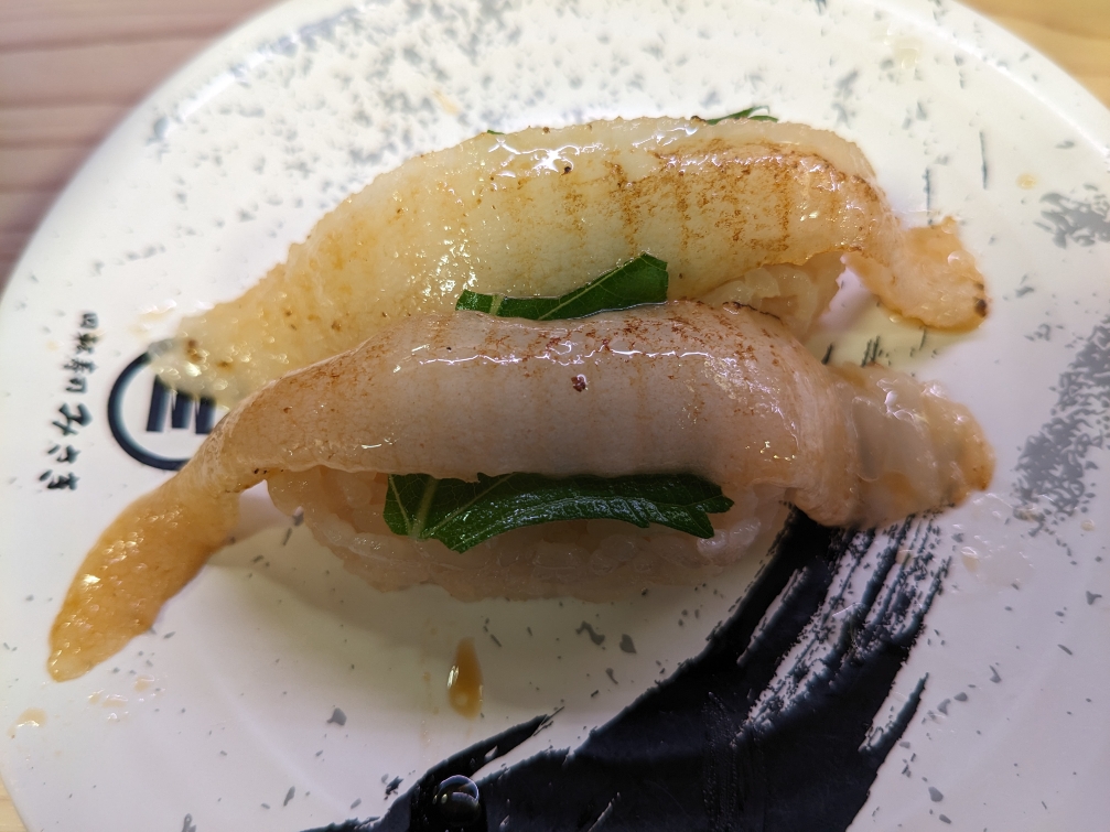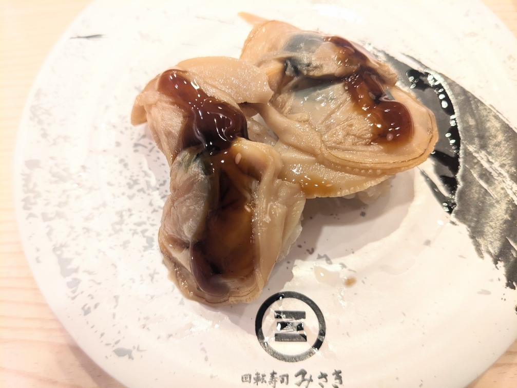 「煮はまぐり」です。なかなか煮ハマに会える回転寿司は少ないです。