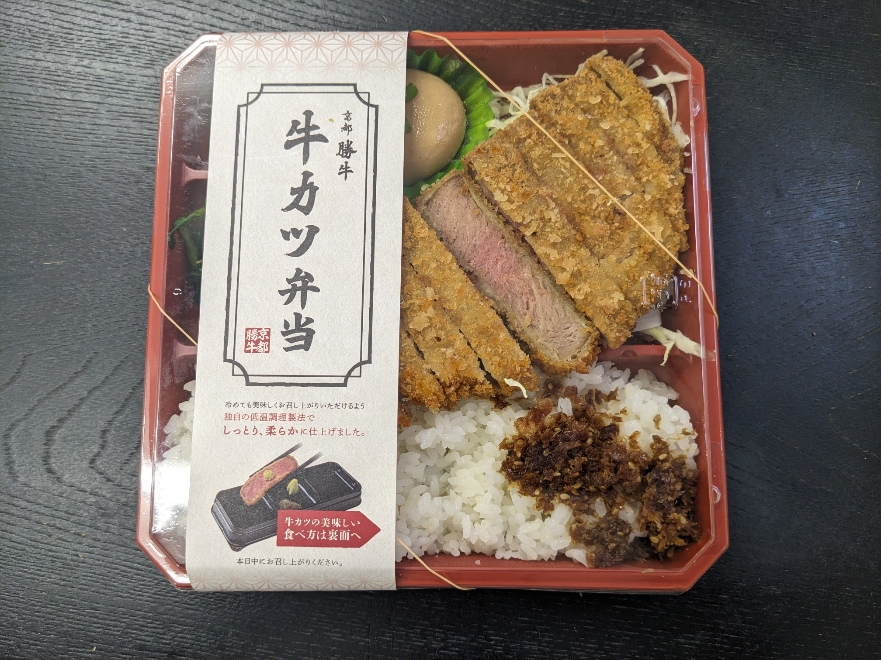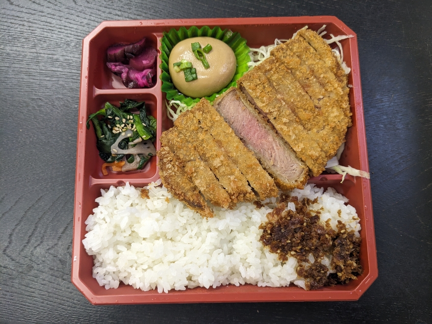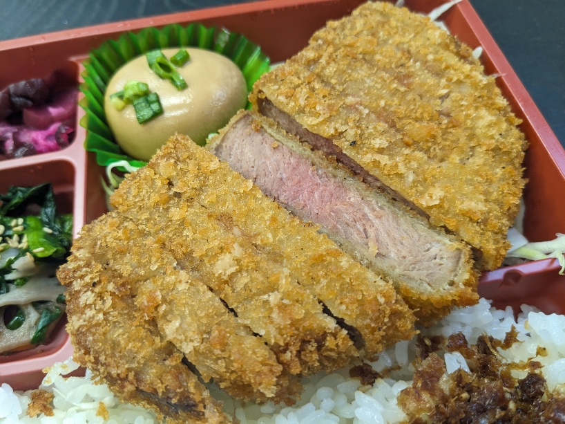 テイクアウトもできます。牛カツ弁当です。牛カツが自宅で楽しめます。