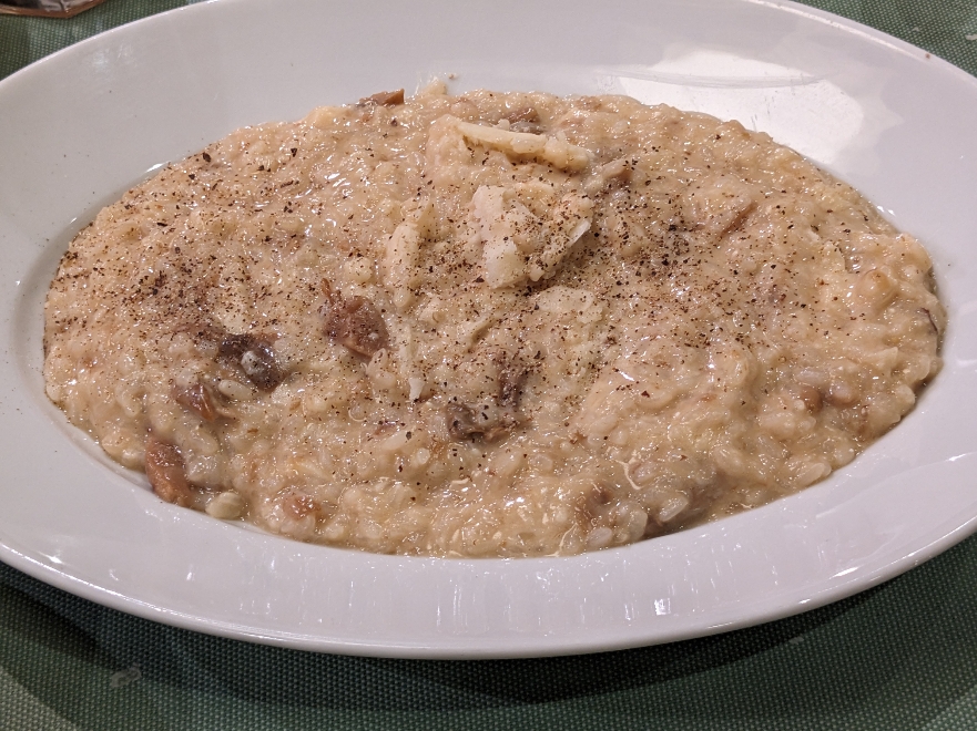 最後に黒胡椒をかけてポルチーニリゾットの完成です。ポルチーニ茸の独特の香りが口いっぱいに広がります。