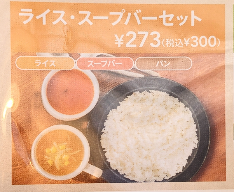 メニューです。 ライス・スープバーセット ¥300