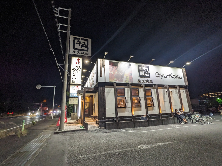 牛角は雰囲気もよくて、手頃な価格で美味しい炭火焼肉が食べられます。全国チェーンなので、どこに行ってもあって、初めてでも安心して入れるお店。女性同士でも気兼ね無く行けますし、値段と味のバランスが良い。サイドメニューや飲み物も充実しています。 市立病院近くの国道1号線沿いです。