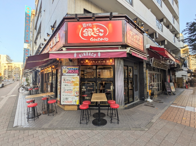 油で揚げているのでカリカリとした食感が美味しい、たこ焼きのチェーン店。 こちらはたこ焼きばかりではなく、一杯できるお店です。 野毛三丁目の交差点角にあります。