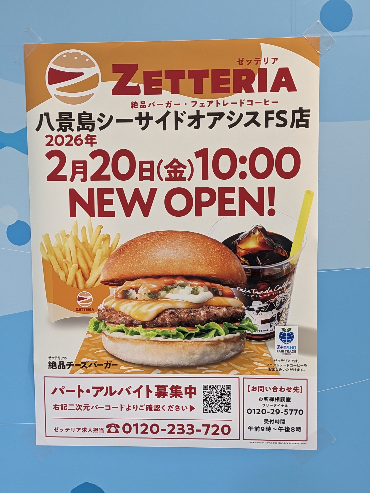 ロッテリアは2月2日に閉店しています。 2月20日にゼッテリアとしてオープンします。