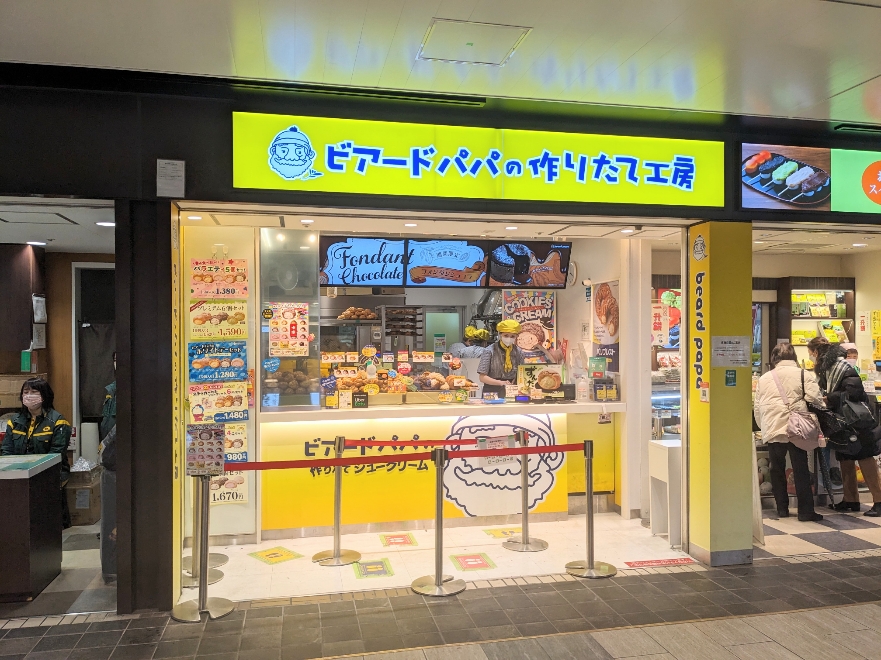 シュークリームのおいしいお店です。やっぱり、サクサクのシューの皮が大好きです。シュークリームの定番のカスタードは、甘さ控えめでバニラビーンズが入ってる本格的なものだけど、220円でクリームたっぷり、結構大きめ、しかも皮サクサクでかなりうまい。お客さんの注文を聞いてからクリームを入れるので、皮がサクッとしているのがかなりいいです。 仙台駅の2階にあります。