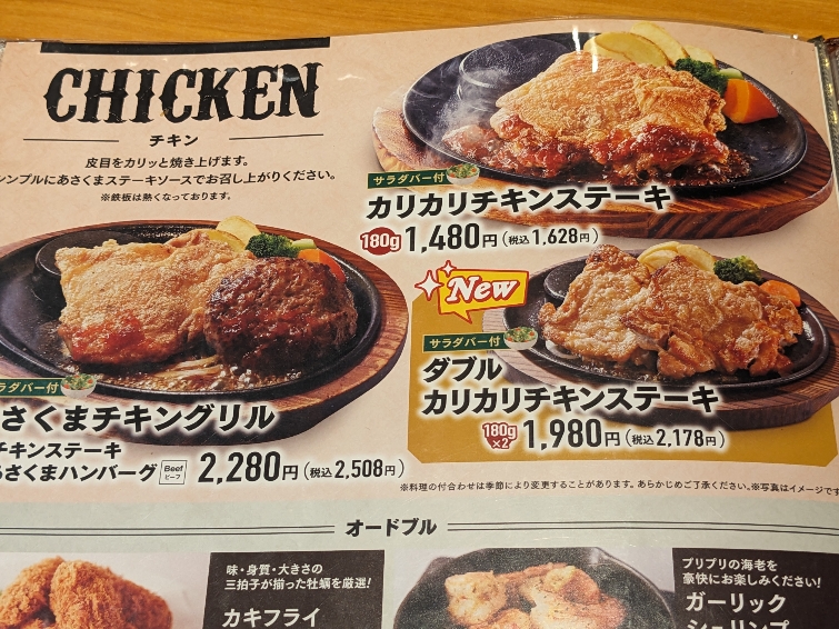 メニューです。180gで¥1,815です。ソースは「ステーキソース」「フレッシュオニオンソース」「デミグラスソース」の3種類から選べます。