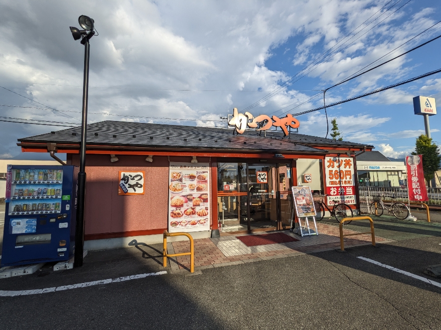 かつやはリーズナブルな値段でとんかつが楽しめるので、いつもお客さんで混んでいます。豚汁も美味しいし、キャベツにつけるドレッシングがゴマ風味で甘味があって美味しいです。 国道20号線、「向町二」交差点の近く、上り車線に面しています。