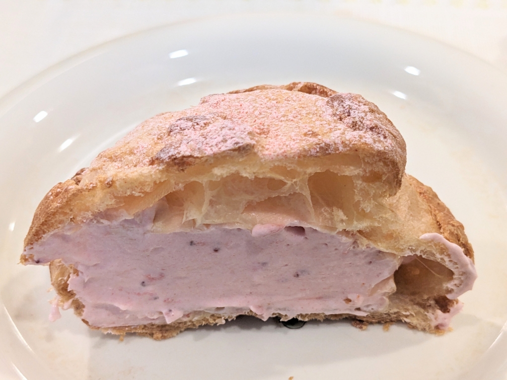 表面はこんがり焼き色、中身はチーズケーキです。甘過ぎず、チーズのケーキの濃厚な香りが楽しめるシュークリームです。