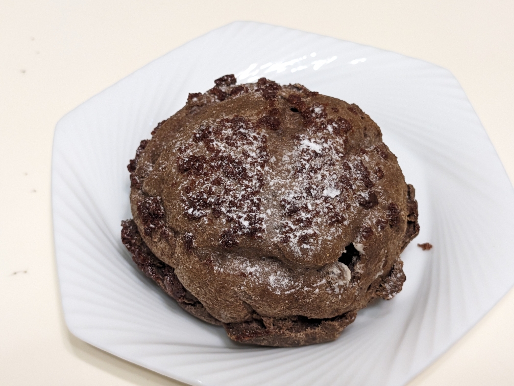 期間限定の「クッキーアンドクリームシュー」です。黒いクッキー生地のザクザク感が新鮮です。