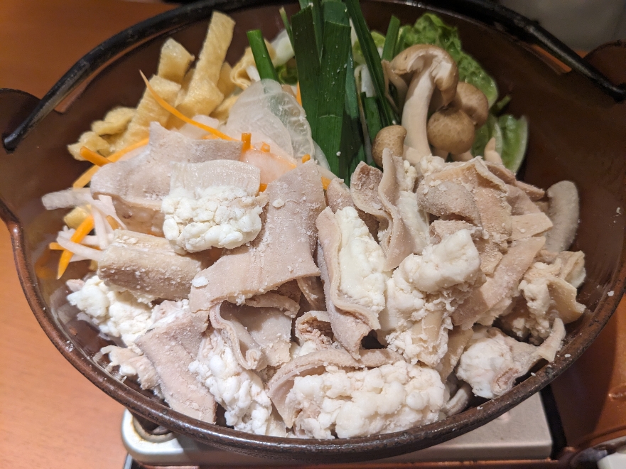 牛もつがこれでもかというぐらいにたっぷりと入っています。嬉しい悲鳴です。