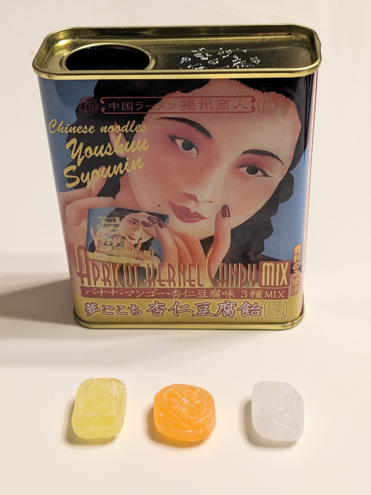 中身は「バナナ」「マンゴー」「杏仁豆腐」味の3種類です。いずれも舐めた瞬間に再現性の高さに驚きます。特に杏仁豆腐味はまさに杏仁豆腐の味がします。最初は杏仁豆腐味ってナニ?という感じでしたが、「おぉ」と声が出てしまいます。