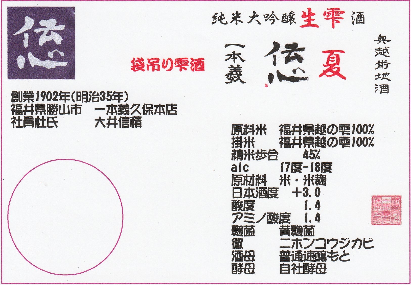 | 純米大吟醸生雫酒 伝心 夏 | (18)